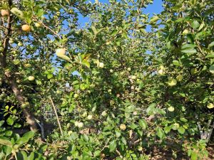 На участке находятся летняя беседка, санузел (душ и туалет).,зона барбекю. место для бассейна.Деревья: яблоня, груша, вишня, слива. Много винограда, клубники, есть малина, смородина, крыжовник.