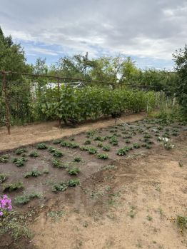 Так же посажен молодой сад, который уже начал давать плоды. Груши, яблоки, сливы, вишня, черешня, виноград, малина, ежевика, клубника, смородина, ешта, крыжовник.