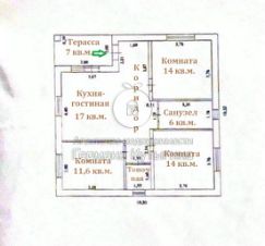 Планировка дома: просторная кухня-гостиная с выходом на террасу, 3 изолированных комнаты, санузел, топочная. Высота потолков 2,8 м.