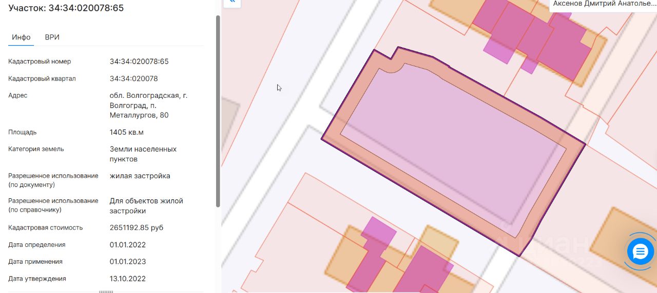 Большой участок в центре Краснооктябрьского района по адресу: территория посёлок Металлургов, Волгоград.
