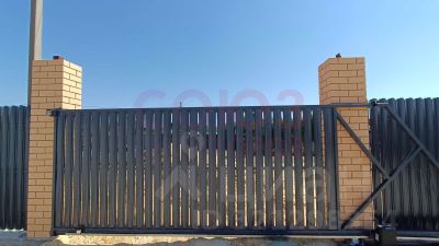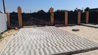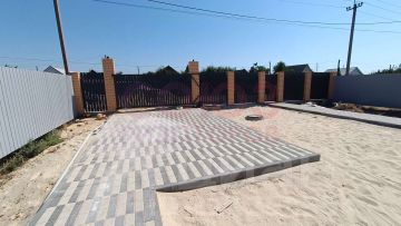 Участок ровный, огорожен по всему периметру, места пользования выложены плиткой, большие электрические ворота 4м.