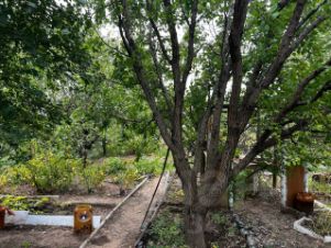 Участок ровный, ухоженный. Имеются хоз. постройка, туалет. Плодовые деревья: груши, яблоня, абрикос, вишня, алыча. Виноград.