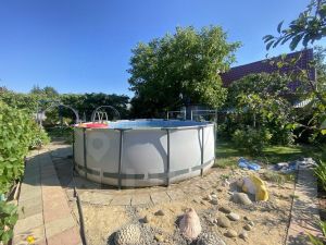 Для детей - каркасный бассейн, качели, площадка для футбола или других активных игр.