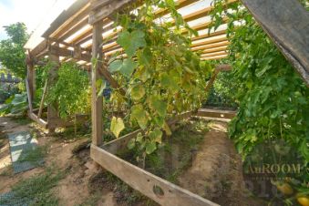 Территория участка прекрасно обустроена: растёт много плодовых деревьев, имеется газон и зона отдыха, виноградник и теплица для выращивания овощей.