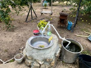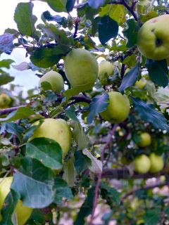 На территории много плодовых деревьев (груша, черешня, слива, орех, яблоня и тутовник), 2 сорта винограда и 3 сорта малины.