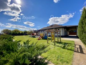 На большом участке площадью 12,6 сот. есть также просторный гостевой дом с баней и застекленной зоной отдыха и мангальной. К нему пристроен большой хоз блок.