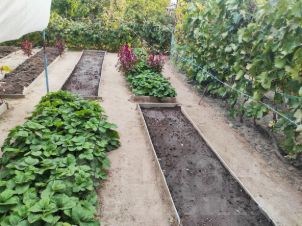 Участок просторный, ухоженный, имеется много плодовых молодых деревьев, цветы, плодоносящий виноград разных сортов, грядки все подготовлены для посадки, кирпичный душ и туалет в чистом виде. Есть зона барбекю, с раковиной и сливом. Водоснабжение в летний период (вода для полива). В СНТ имеется своя скважина с питьевой водой. Дорога к даче просыпана щебенкой, улица просторная. При желании можно провести газ.