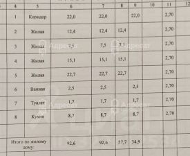 Общая площадь строения составляет 92,6 кв.м, что включает в себя просторную жилую зону в 57,7 кв.м и удобную кухню площадью 8,7 кв.м.
