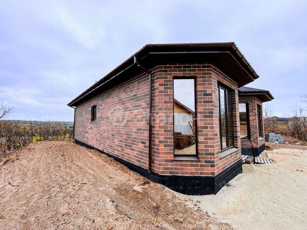 В Ворошиловском Р-не, отделанный красивым облицованным кирпичем, швы на белом цементе, утеплитель 100 мм, фундамент ленточный + монолитный сплошной (ПЛИТА), арматура 14 мм 3 ряда по 3 арматуры, монолитные полы с армированием сетка 30/30, Кровля мягкая Технониколь коричневый 2х слойная гарантия 30 лет, утеплена 150 мм утеплителем, окна с зеркальным покрытием и защитой от ультрафиолета, перегородки в доме построены из силикатной перегородки, сделана штукатурка, освещение электрический щит, заведены коммуникации свет, канализация, газ по гос программе.