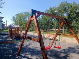 На территории коттеджного поселка есть детская площадка, территория для прогулок среди вековых дубов, родник.