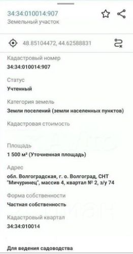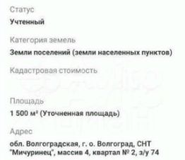 Продаётся большой земельный участок площадью 15 соток в СНТ Мичуринец массив 4 квартал 2 з/у 74 Тракторозаводской район.На участке 15 соток.Электричество,рядом проходит газ.Участок находится в очень удобном месте,рядом большой жилой массив с домами для круглогодичного проживания.Дорога до участка широкая с твердым покрытием,магазин и остановка общественного транспорта в шаговой доступности.Место перспективное под строительство жилого дома.Документы готовы к продаже.Один собственник,чистая продажа.Возможен торг при осмотре участка.