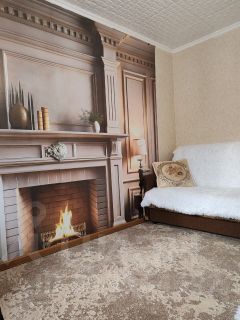 На первом этаже комната и кухня, на втором комната и мансарда