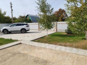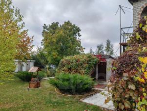 На участке высаженно много молодых туй и елочек, березы украшают газон. Есть орех грецкий, слива, абрикос, виноград, груша, клубника.