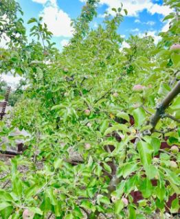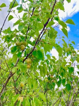На участке имеется металлическая емкость. Несколько плодовых деревьев.