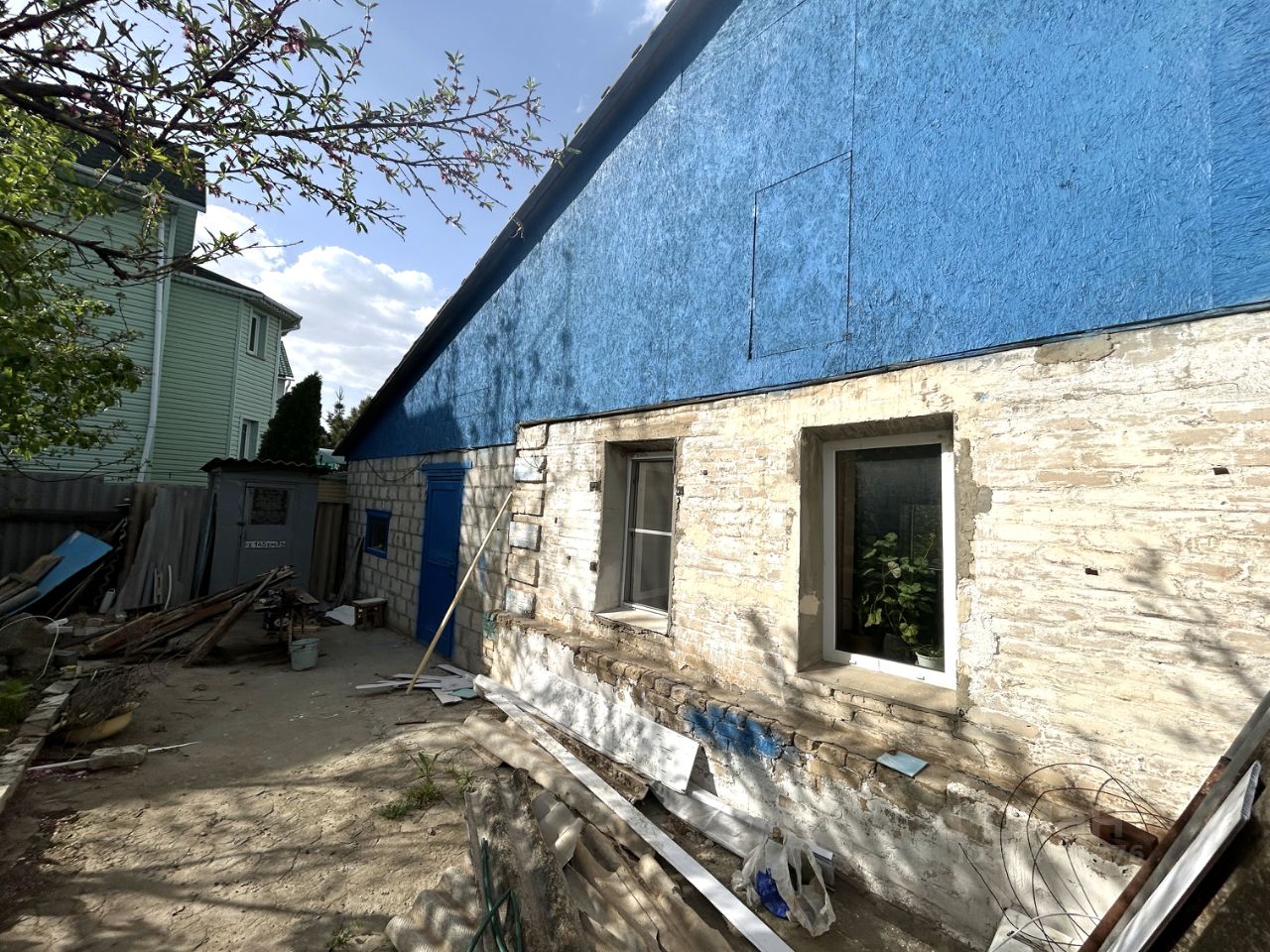 Дом из дерева ,обложен кирпичом .Огромный гараж ,который порадует автовладельцев ,или людей которые занимаются своим ремеслом(гараж подходит под эксплуатацию не по назначению)