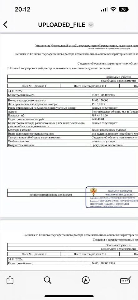 Статус участка