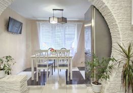 Большая гостиная, просторная кухня, 2 санузла и 4 спальные комнаты. Удобная, широкая лестница.
