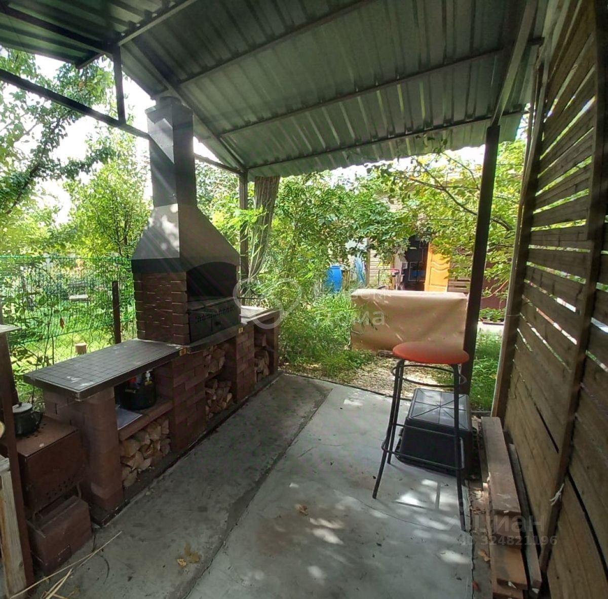 Территория земельного участка: 2 места под стоянку автомобиля под навесом, открытая беседка под навесом, зона барбекю под навесом (остается по договоренности).