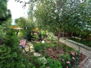Посадки декоративные: ель, елка, туи, можжевельники, гортензии, лилии, лилейники, сирень, розы, хризантемы. Есть ежевика, малина.