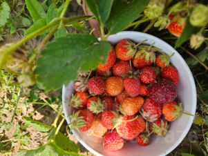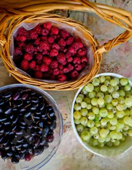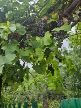 На участке растут плодовые и ягодные деревья: черешня,вишня, яблоня, слива, тёрн, груша, смородина, крыжовник, малина, клубника, ежевика, а также много винограда.