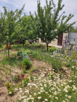 Деревья: яблоня, груша, черешня, вишня. Малина, клубника, виноград.