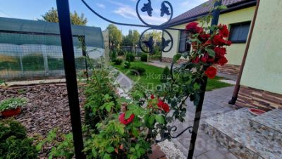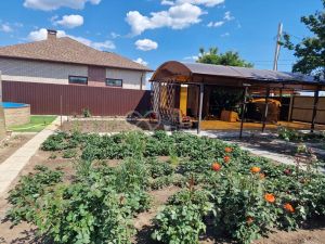 Земельный участок с зонированием: сад, огород, мангальная зона. Установлены откатные ворота "Дорхан" с двух сторон. Есть 2 навеса, стоянка под авто, на дальней зоне — курятник и крольчатник. Установлен автополив, есть гараж с подвалом, летняя беседка (используется, как гостевой домик), сарай, летний душ и туалет, бассейн с системой очистки.