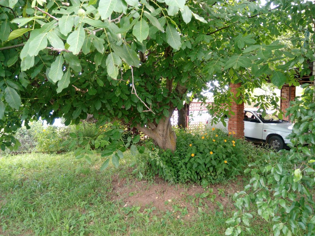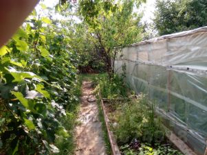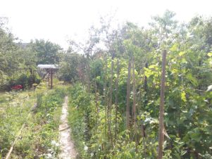 Очень много плодовых деревьев. Яблоки, груши, орех, абрикосы, вишня, персики, черешня, слива, рябина, малина, клубника. Много места для огорода.