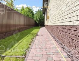 - Ухоженный двор с газоном, брусчаткой и уютной беседкой для отдыха.