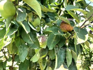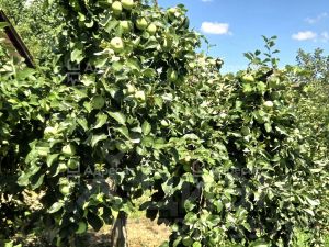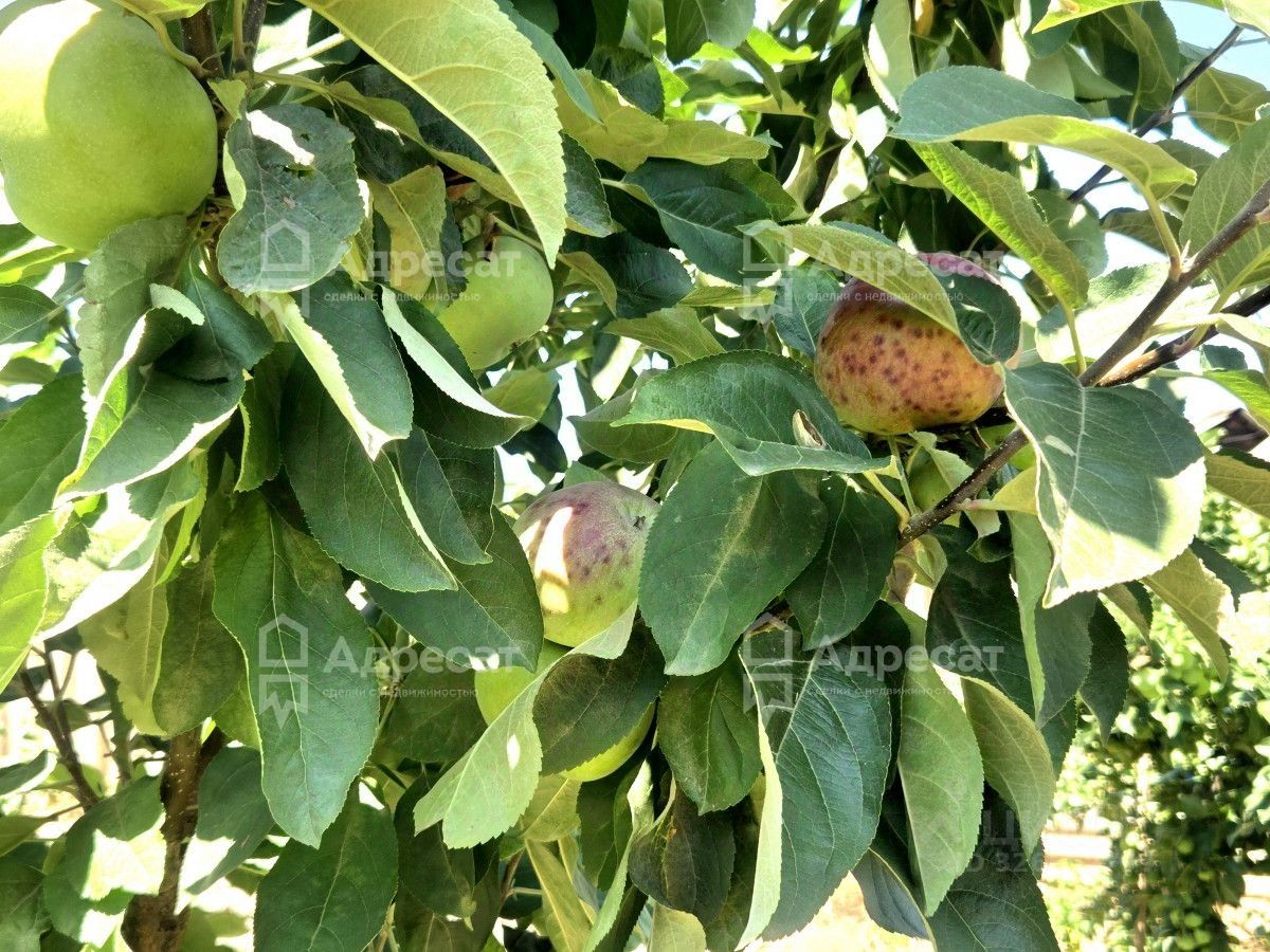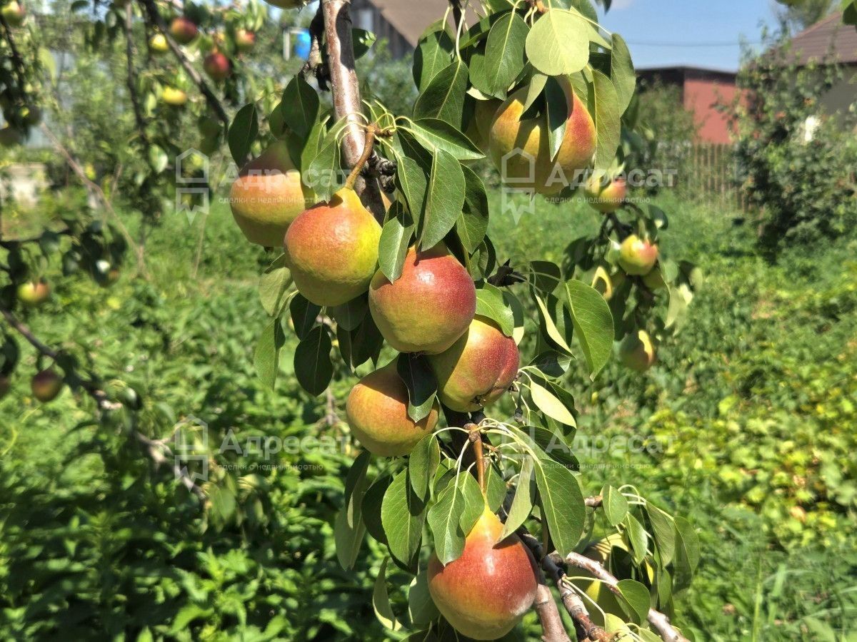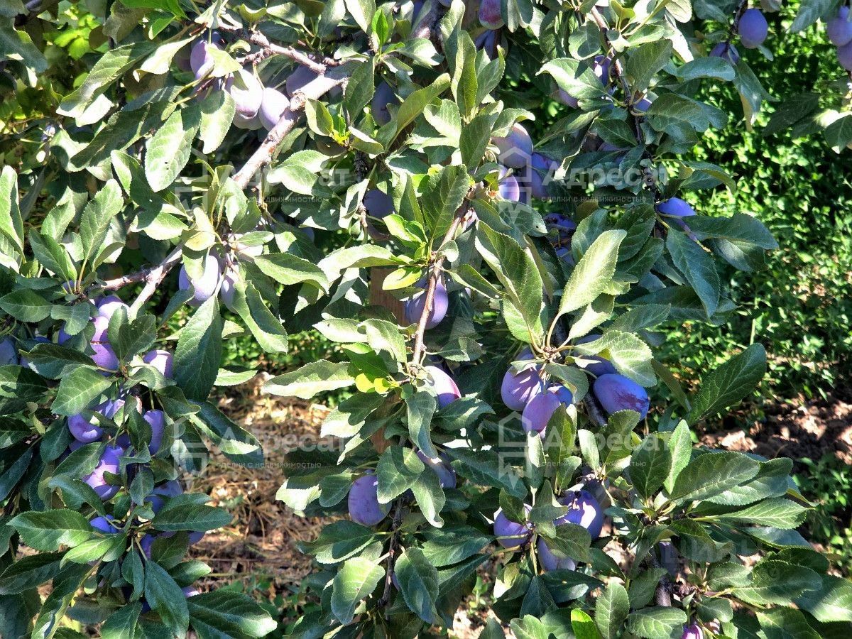 На участке высажены садовые деревья: персик, яблоня, груша, черешня.