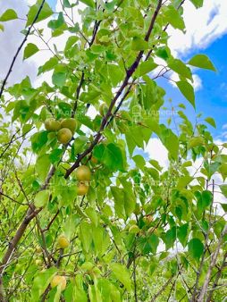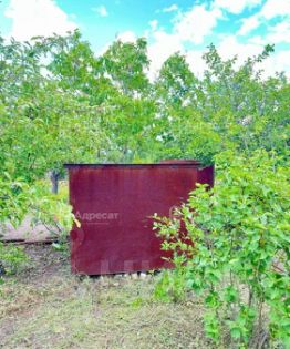 На участке имеется металлическая емкость. Несколько плодовых деревьев.