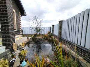 Во дворе большой пруд 8*3 метра и глубиной 1,6м, живут рыбы и в нем зимуют, более 50 рыб комет и Карпов кои.