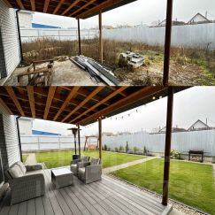 На фото представлены вариации как может выглядеть дом , участок и ремонт в соответствии с дизайн проектом .