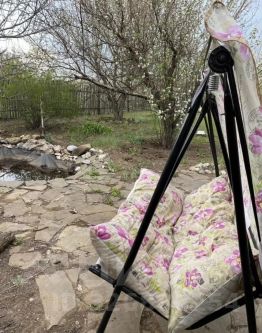 Домик кирпичный, двухэтажный. На 2 этаже балкон. Двери железные, внутри дома вся необходимая мебель для проживания. Свет подключен. Во дворе хоз. постройка и отдельное помещение под душ. Кроме того на участке кирпичный уличный туалет. Много растений, яблоки, орехи, груши, много разных елок, цветов. Все окна домика зафиксированы металлическими решетками, никто домой пробраться не сможет. В помещении хозпостройки также установлена металлическая дверь. Участок огорожен деревянным забором, а также металлическими воротами. Очень уютное место, чистый воздух.