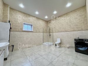 На первом этаже находится просторная гостинная, кухня, санузел совмещенный и одна жилая комната. На всем первом этаже установлена система "Теплый пол". Керамогранит в гостинной, кухне и санузле. В жилой комнате - ламинат.