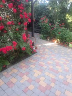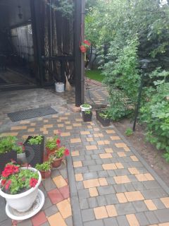 - Участок: ровный, обнесен забором из металлопрофиля, покрыт брусчаткой.