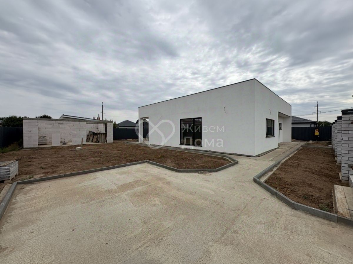 Дом 2024 года постройки. Материал газоблок, снаружи белая декоративная штукатурка, отштукатуренные кирпичные межкомнатные перегородки на полу сухая стяжка. Установлен двухкамерный стеклопакет с ламинацией, все окна в пол, предчистовая отделка. Электрика вся заведена в дом, есть две сплит-системы. Во всем доме теплый пол, в котельной установлен газовый котел. Приточная вытяжная вентиляция смонтирована. Планировка состоит из 3 жилых комнат, просторная кухня-гостинная с выходом на террасу, котельная, два санузла, кладовая на территории кухни.