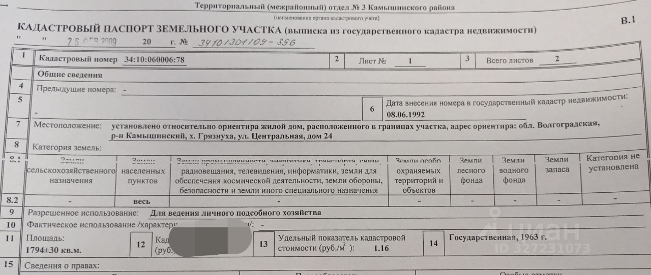 Кадастровый номер 34:10:060006:78
