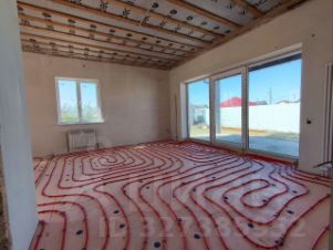 Теплый пол по всем комнатам. Разведена электрика. Оштукатурены стены. Подшит потолок. Теплый пол по площади всего дома за исключением спален. В них установлены радиаторы . Забор из профнастила.
