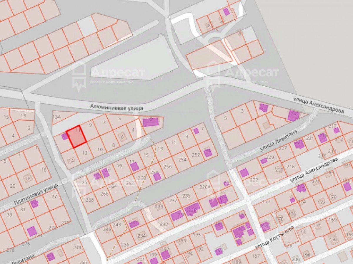 Участок 6,16 соток расположен на улице Алюминиевая , 11.
