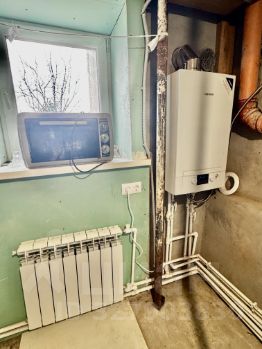 Качественный ремонт. Газ, вода, электричество, 2 септика. Высота потолков 3,20 м. Пластик окна, межкомнатные двери, сантехника. На полу плитка-теплый пол, радиаторы, новая электрика, двух контурный газовый котел.