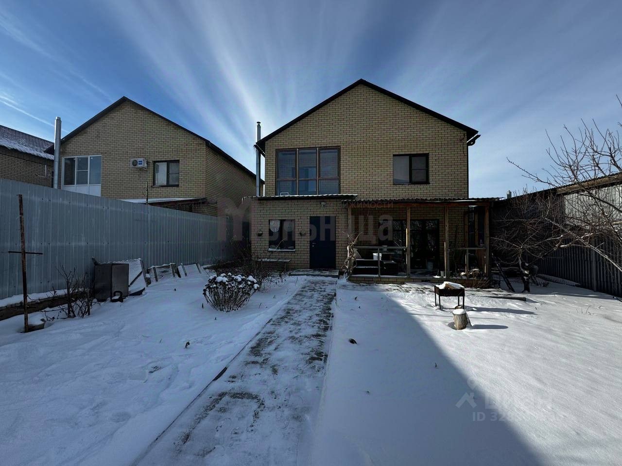 Дорожки во дворе вымощены брусчаткой, по всему периметру установлен металлический забор с откатными воротами и заездом для машины.