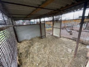 На участке расположено несколько хозблоков, туалет, вольеры для животных, вольер для птиц.