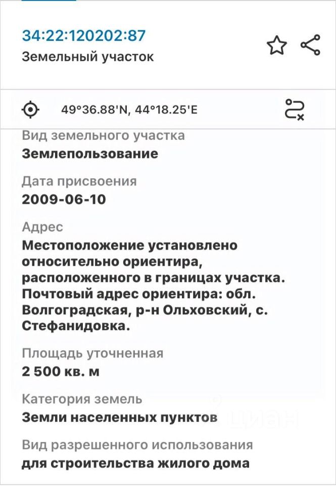 34:22:120202:87 (координаты на яндекс карте 49.614657, 44.304179)