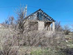 На участке кирпичный дом, недострой.