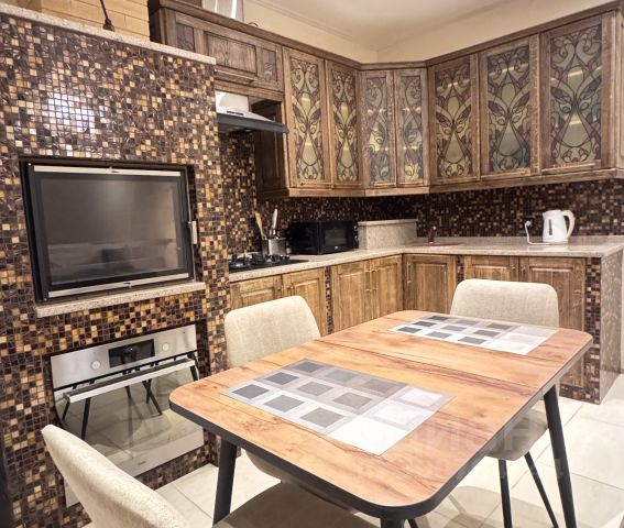Кухня со всем необходимым (холодильник, варочная панель, духовой шкаф, микроволновая печь, чайник, кофемашина, а так же посуда, приборы и фильтр для питьевой воды)