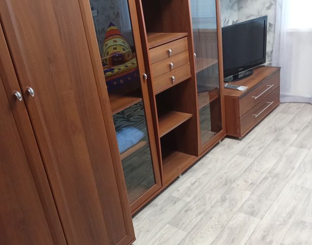 Здравствуйте! Хочувамрассказатьоквартире. Вквартиренаходятсядвеуютныекомнаты: Воднойкомнате-двуспальнаякроватьишкафскомодом, авдругой- односпальнаякроватьитумба. Накухне Находитсямикроволновка, холодильникителевизорстелевизионнойприставкой. Втуалетнойкомнатеимеетсястиральнаямашинкаиваннаст уалетом. Вприхожейимеетсягардеробная. Видизокнавыходитнадетскуюплощадкуводвор. Дворчистый, естьгдехорошопровестивремя. Недалёкоотдоманаходятсямагазиныиавтобуснаяостанов ка.