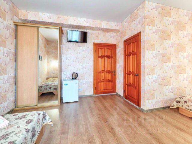 В номере двуспальный диван, сплит-система, телевизор, холодильник. Санузел общий на этаже. На территории базы есть общая кухня для самостоятельного приготовления еды, а также мангальная зона. Возможно размещение с животными(только до 5 кг. ).