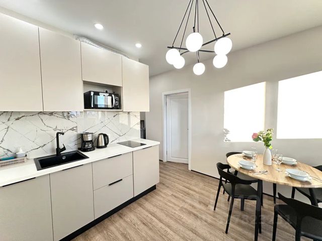 Современная квартира студия с 4-мя спальными местами для 4 гостей в спальном районе города 29 м² РЯДОМ РАСПОЛАГАЕТСЯ: - Трамвайная и автобусная развязка; идут прямые автобусы до вокзала, Аллеи Героев и Вечного огня. - продуктовые супермаркет, Магнит, Покупочка; - банкоматы, аптеки От аэропорта 15-20 минут езды. До ЖД и автовокзала 10-15 минут езды. Центр, Аллея героев, вечный огонь, центральная набережная 15-20 минут езды. Мамаев курган 7-10 минут езды СПАЛЬНЫЕ МЕСТА: Спальные места: 1 диван-кровать, 1 двуспальная кровать. ПРЕИМУЩЕСТВА: Квартира 100% соответствует фото. Работаем с командированными и организациями. Предоставляем по запросу отчетные документы. Бесконтактное и круглосуточное заселение. Заселяем без животных. На территории парковка, детская и игровая площадка. Оснащенность апартаментов всем необходимым для комфортного отдыха: • Чистое хлопковое белье, комплект полотенец для каждого гостя (шампунь/гель); • Оборудованная кухня (имеется чай, сахар) • Все необходимое для стирки и уборки (стиральный порошок, средство для мытья посуды) • Скоростной Wi-Fi; • Телевизор. • Необходимая бытовая техника и посуда (холодильник, плита, микроволновка, стиральная машина, телевизор, фен, утюг). ПРАВИЛА ЗАСЕЛЕНИЯ: Расчетное время заезда с 15:00 Расчетное время выезда до 12:00 - Возвратный залог 2000 рублей АПАРТАМЕНТЫ НЕ ПРЕДОСТАВЛЯЮТСЯ: - для проведения шумных праздников и вечеринок; - для лиц, курящих в помещении (В случае выявления фактов курения, будет взиматься штраф в размере страхового залога) - лицам, не достигшим 18 лет (Заселение только по паспорту). - Дети в возрасте до 4-х лет проживают бесплатно, если не занимают дополнительное место, с 4-х лет и старше считаются взрослыми. Тихий час с 23.00 до 08.00. Базовая стоимость рассчитана на 4 гостей. Остались вопросы? Свяжитесь с нами по Звонки принимаем до 24:00 часов. Ждем Вас! Сеть гостевых квартир.