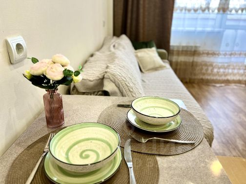 Сдаём уютную квартиру- студию в новом ЖК Акварель! В квартире есть всё необходимое для комфортной жизни: холодильник, микроволновая печь, электропечь, электрический чайник, мягкий раскладной диван, гладильная доска, посуда, стиральная машинка, сплитсистема. А так же водонагреватель, даже во время профилактики у вас будет горячая вода ! Дом расположен в удобном месте. В пешей доступности: остановка общественного транспорта, сетевые магазины, кофе кафетерий Конфетки бараночки , рынок , парк 70-летия Победы. В стоимость не входят к/у